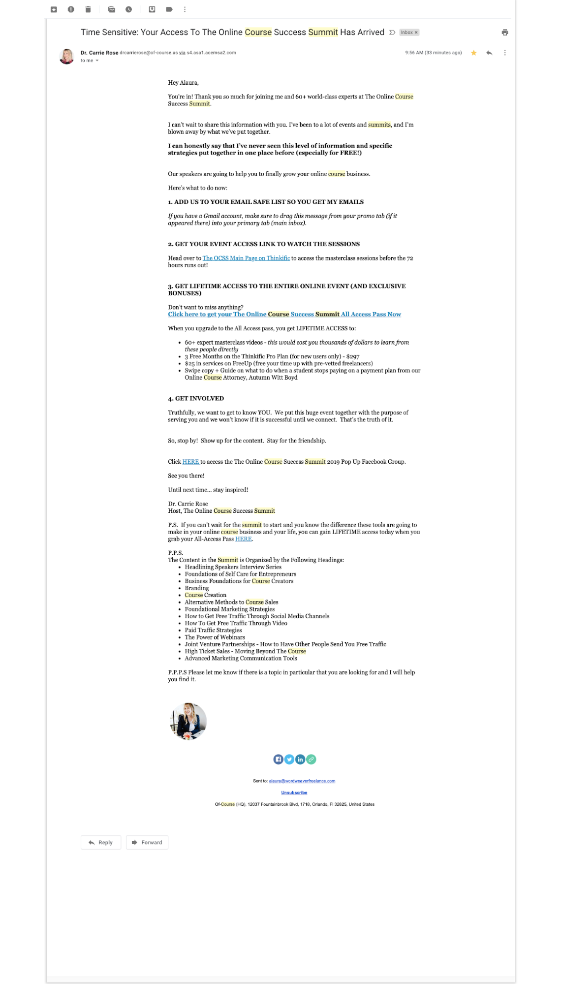 Those numbers are based on sales, not watching a webinar, but that data supports the knowledge that people trust their friends and acquaintances. So, putting social media and sharing links on your thank you page can drive conversions.
