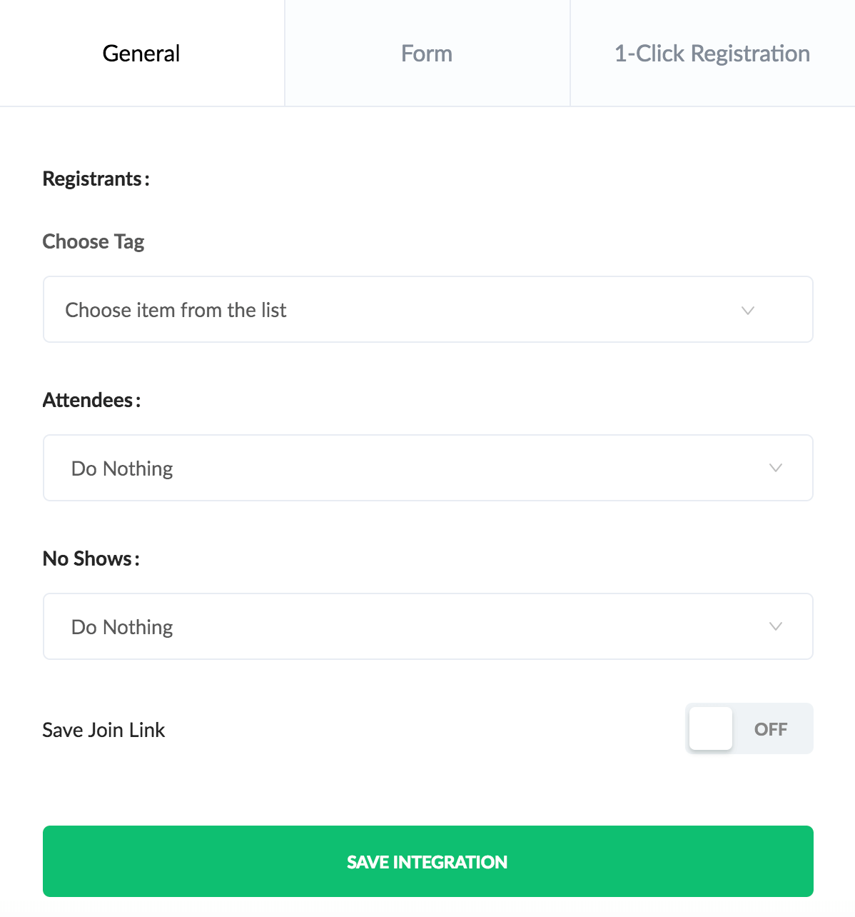 Allow your existing contacts to automatically register for an event with one click. Just copy the 1-click URL and send it to your audience.